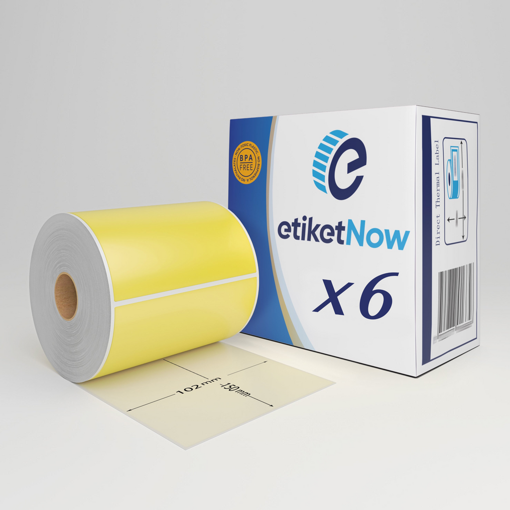 6 Rollen Zebra 800264-605 kompatible Etiketten, 102 mm x 150 mm, 280 Etiketten, 25 mm Kern, permanent, Gelb