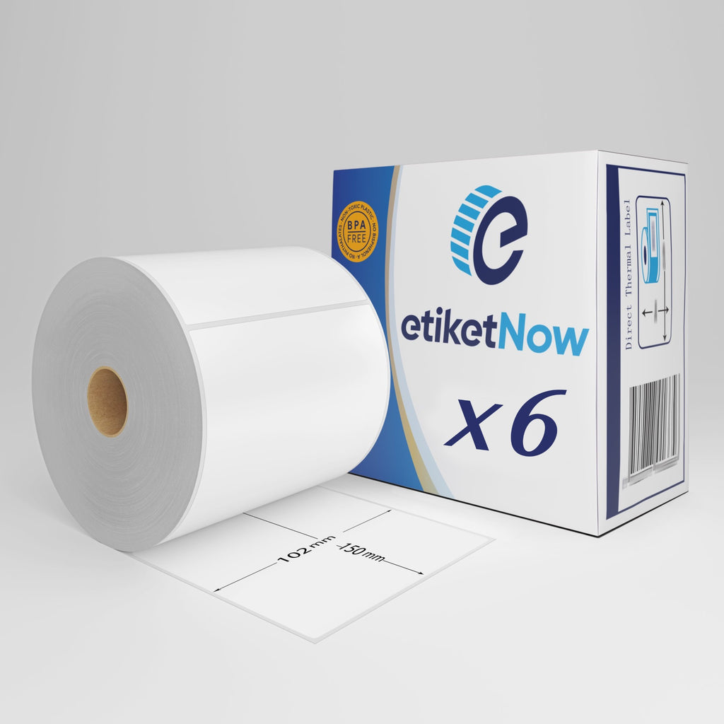 6 Rolls of Zebra 800264-605 Compatible Labels, 102 mm x 150 mm, 300 Labels, 25 mm Core, Permanent, White